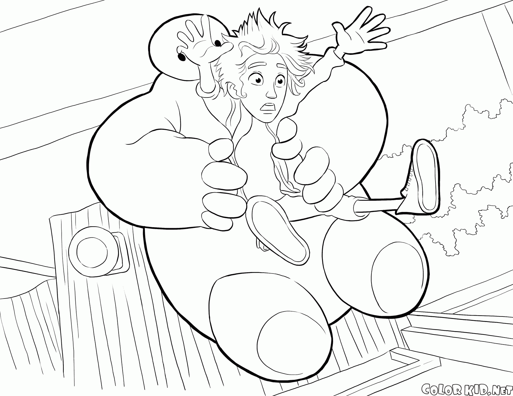 Boyama sayfası - Baymax ve Hiro aşağı uçan