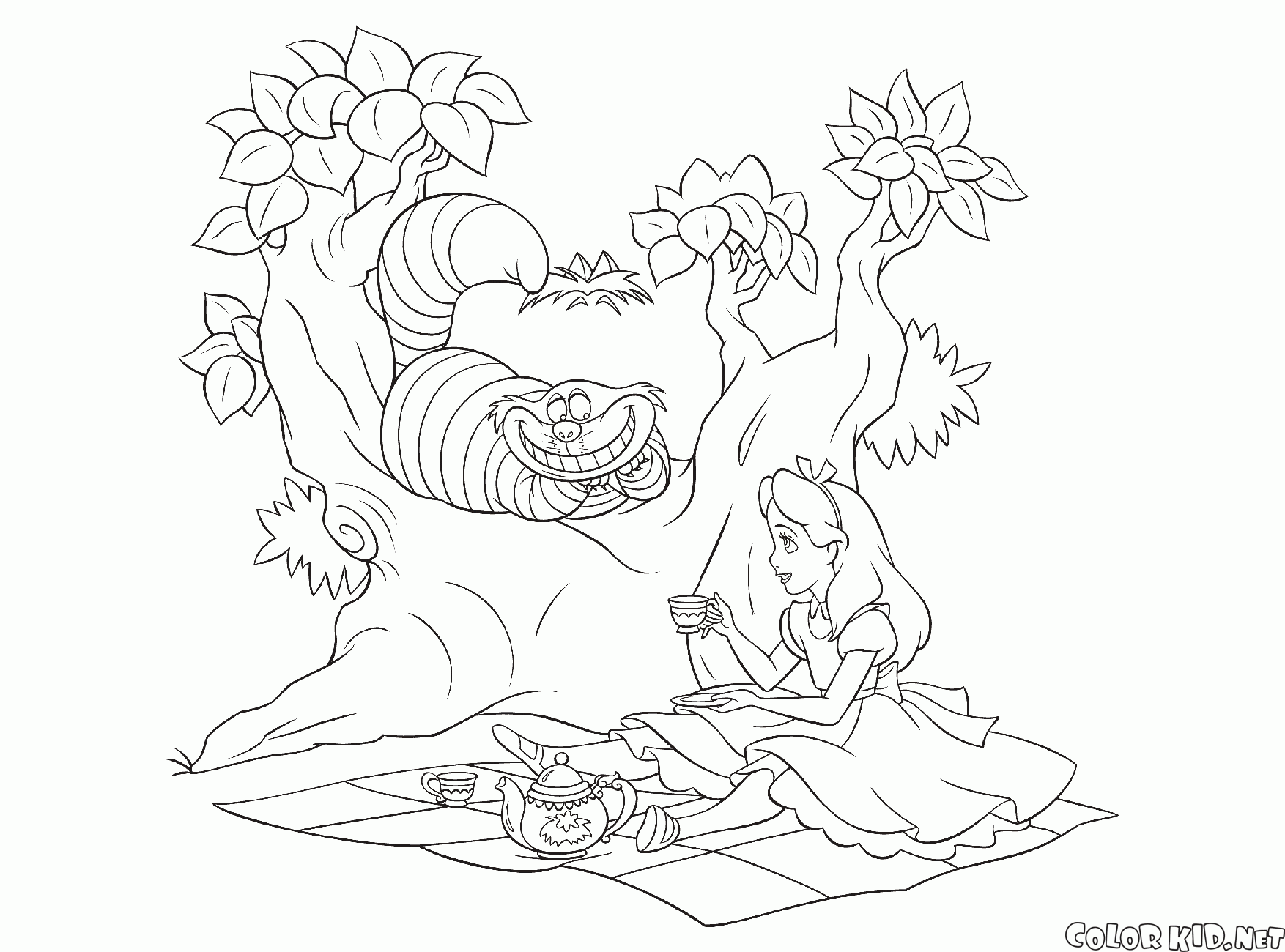 Boyama sayfası - Cheshire Cat Çay partisi