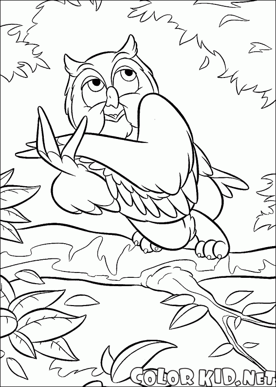 Boyama sayfası - Derin düşüncelere dalmış Owl