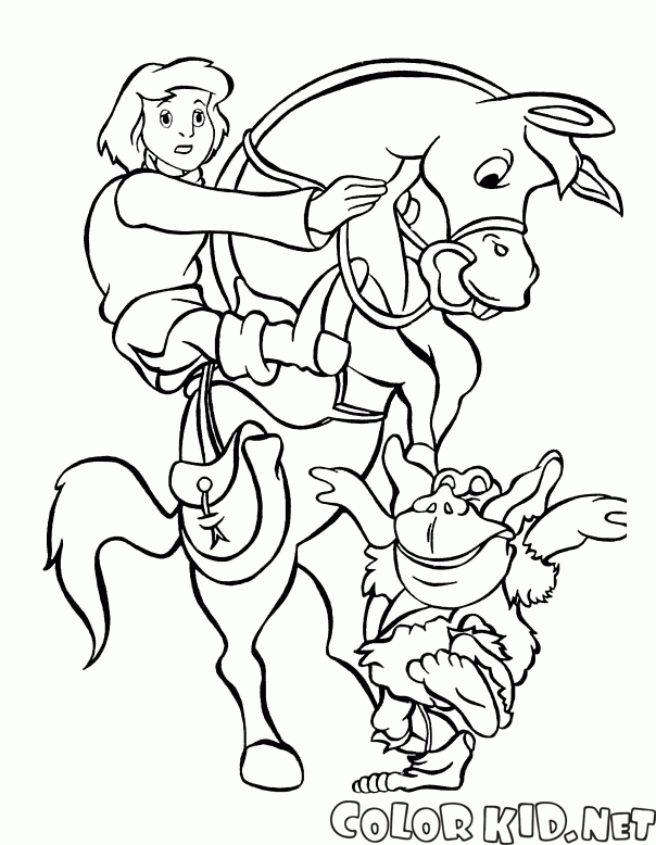 Boyama sayfası - Bir at üzerinde Kevin