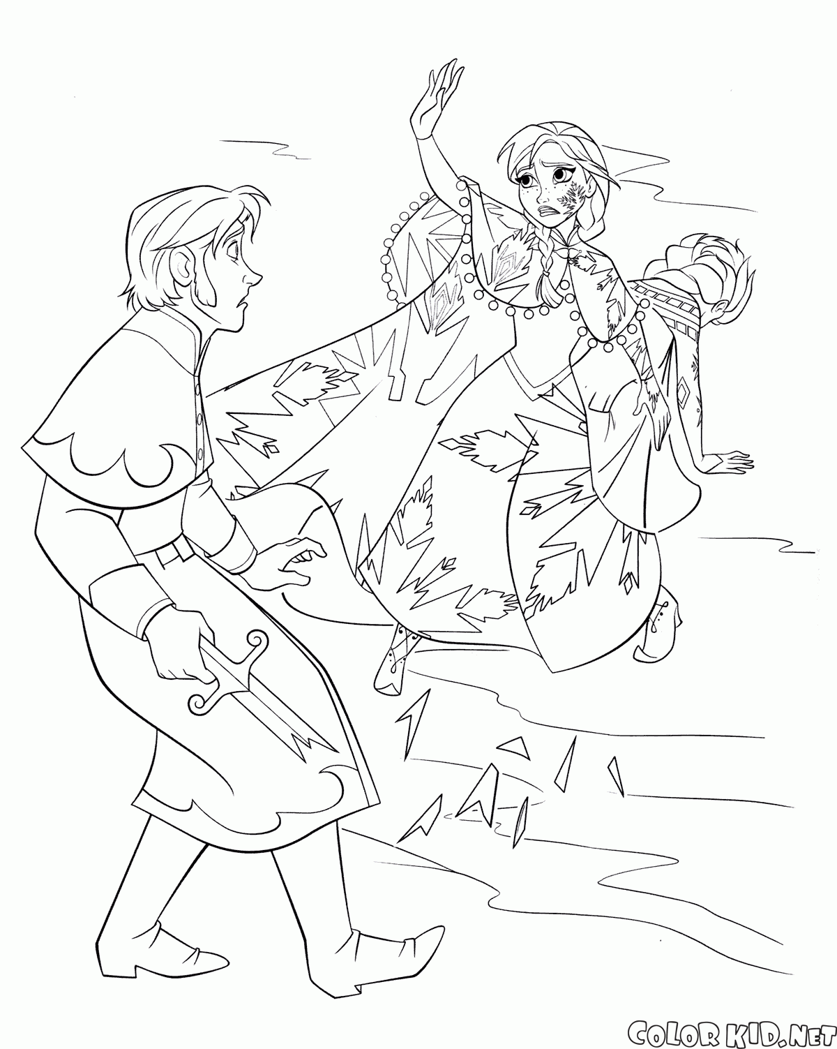 Boyama sayfası - Anna kız kardeşi koruyor