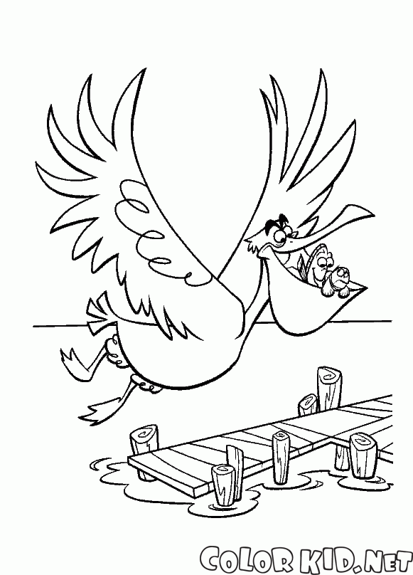 Boyama sayfası - Pelican ve balık