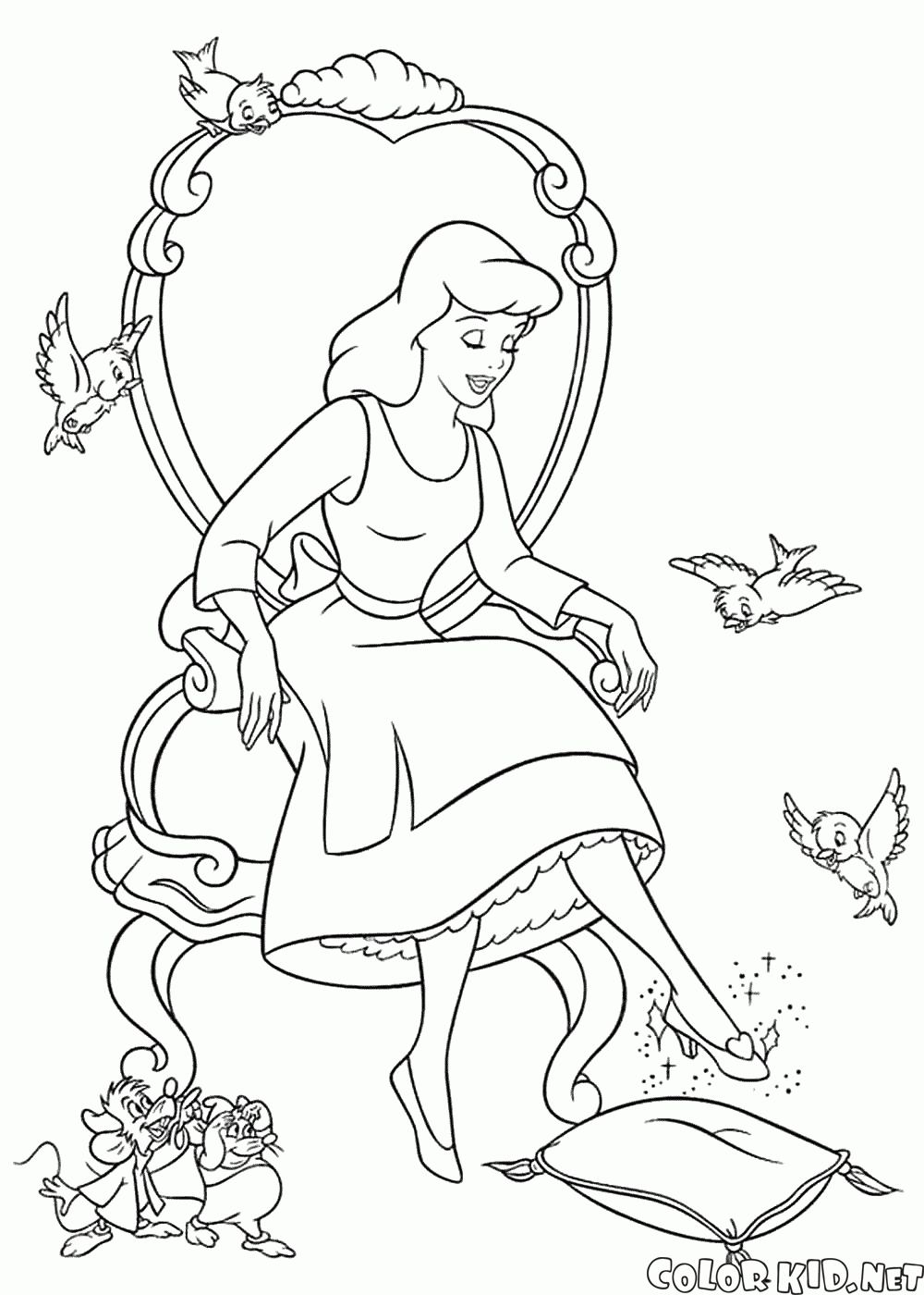 Boyama sayfası - Sindirella ve cam terlik