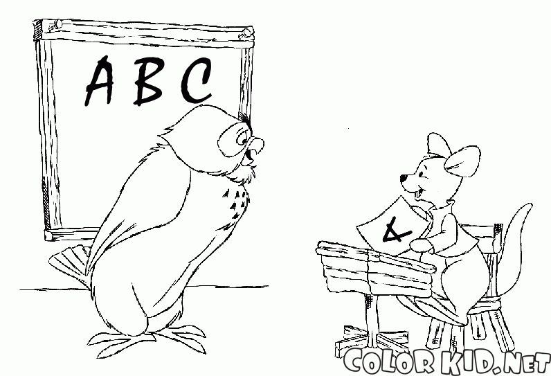 Boyama sayfası - Baykuş ve küçük kanguru