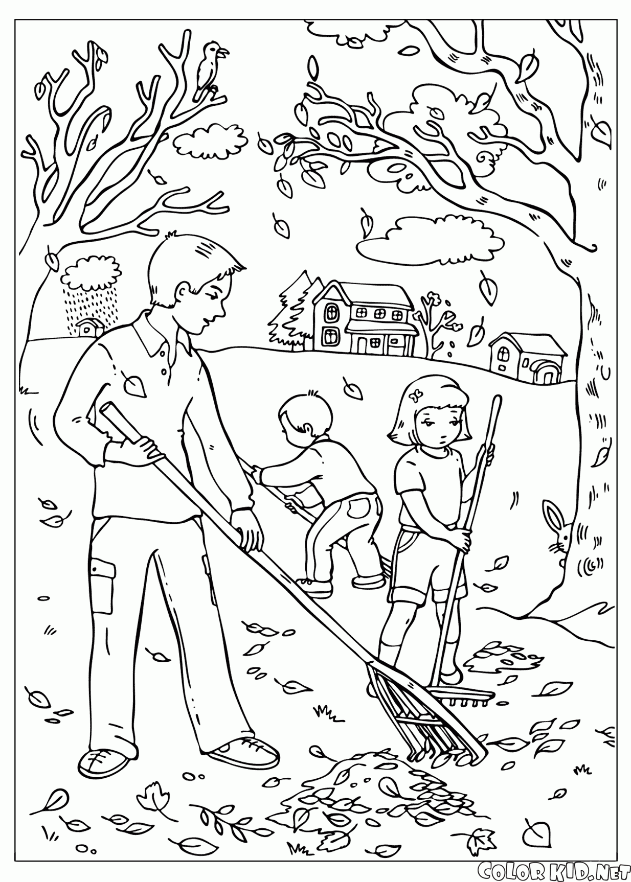 Boyama sayfası - Yaprakları Temizlik