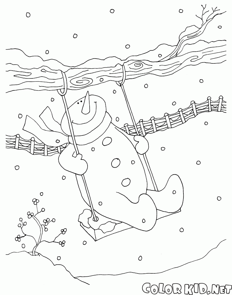 Bir salıncakta Snowman